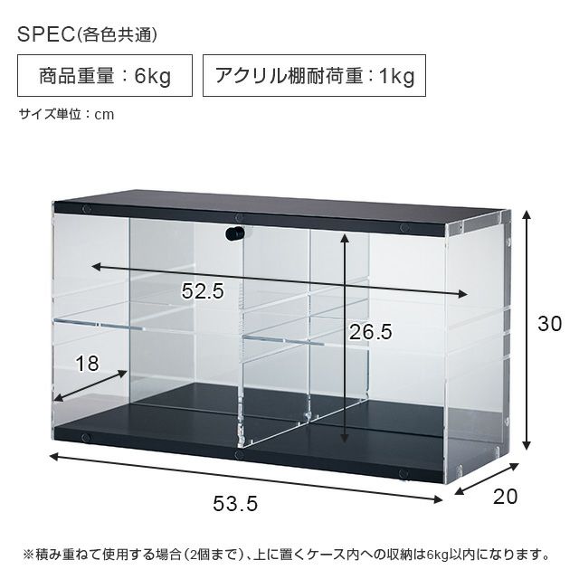 棚板:1kg 全体:積み重ねて使用する場合、上に置くケースの全体耐荷重は3kgです。 |