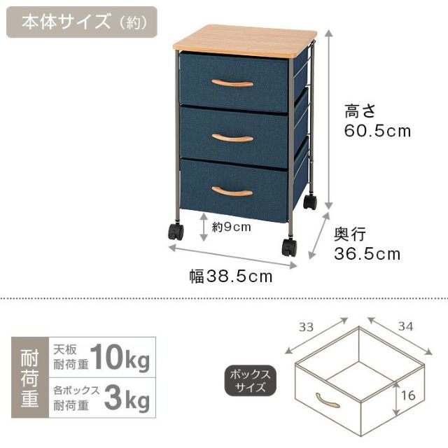 チェスト 幅40cm 3段 型 幅38.5×奥行36.5×高さ60.5cm CNC40-3