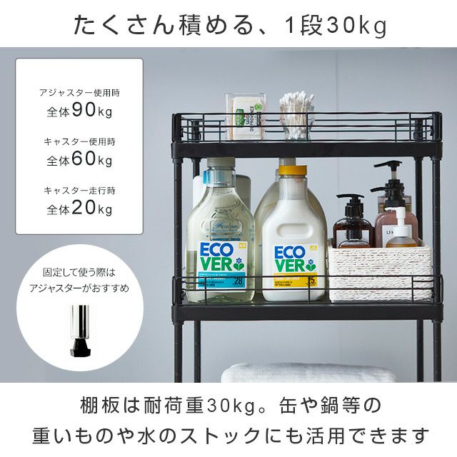 【アジャスター取付の場合】 ラック全体耐荷重:90kg