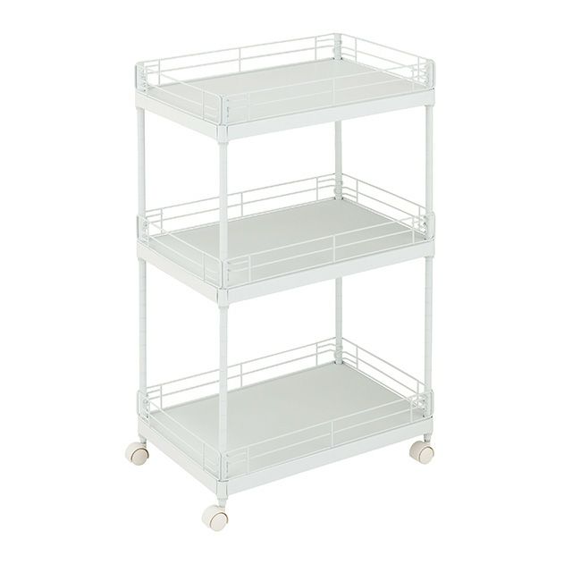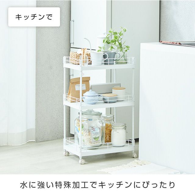 シェルフ(棚板)×3、ポール(分割式)×4、スリーブ(取付部品)×12組(+予備1組)、キャスター(ストッパー無し)×4、アジャスター×4、サポート柵(20cm)×6、サポート柵(45cm)×6 |