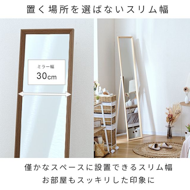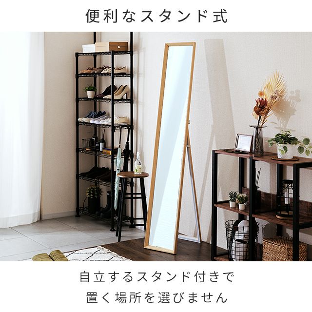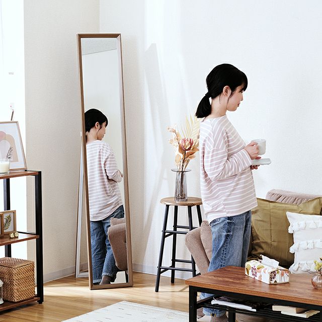 | ミラー 飛散防止 スタンド式 立てかけ 木目調 全身鏡インテリア 北欧 シンプル ナチュラル モダン おしゃれ |