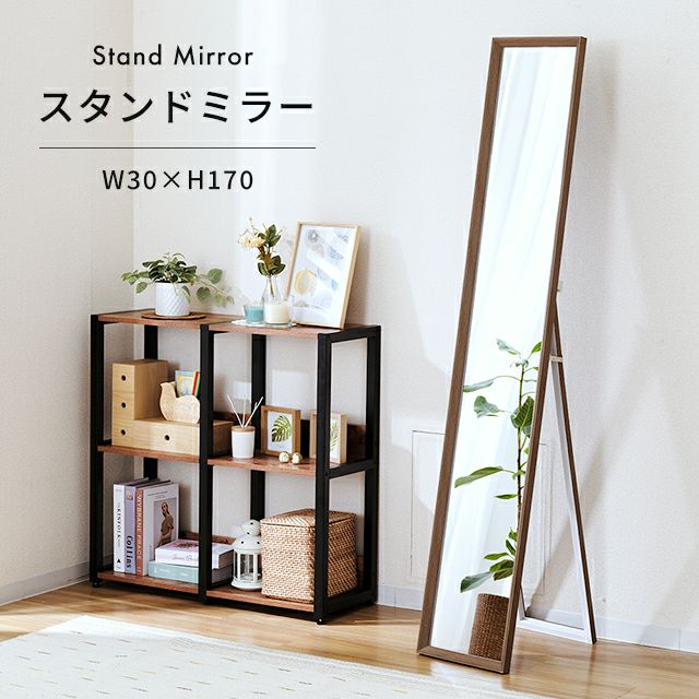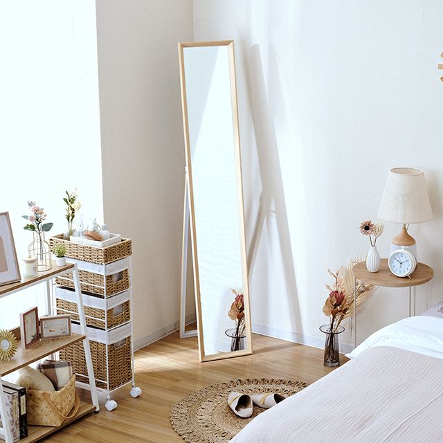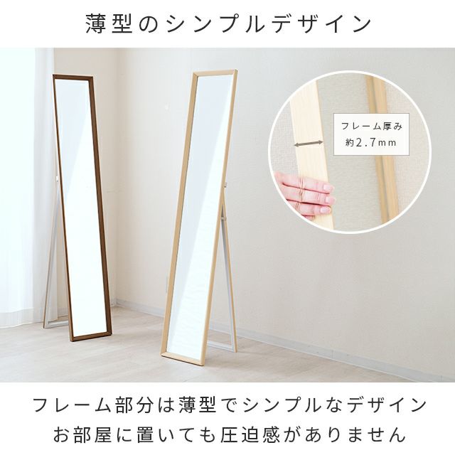 | ミラー 飛散防止 スタンド式 立てかけ 木目調 全身鏡インテリア 北欧 シンプル ナチュラル モダン おしゃれ |