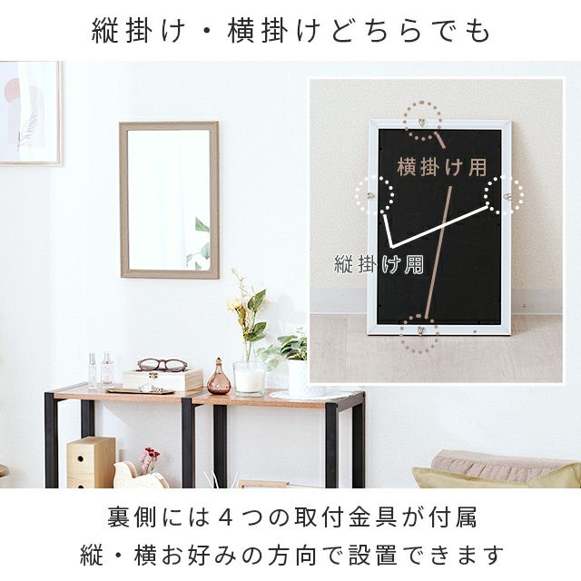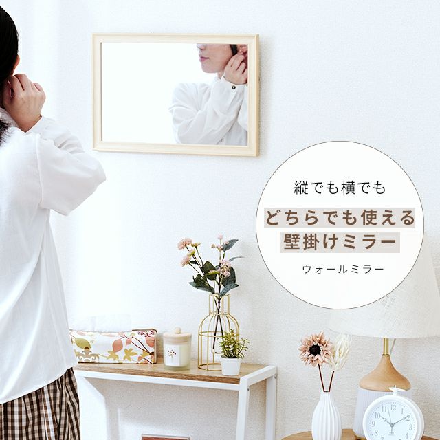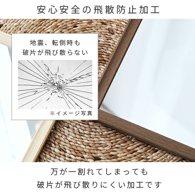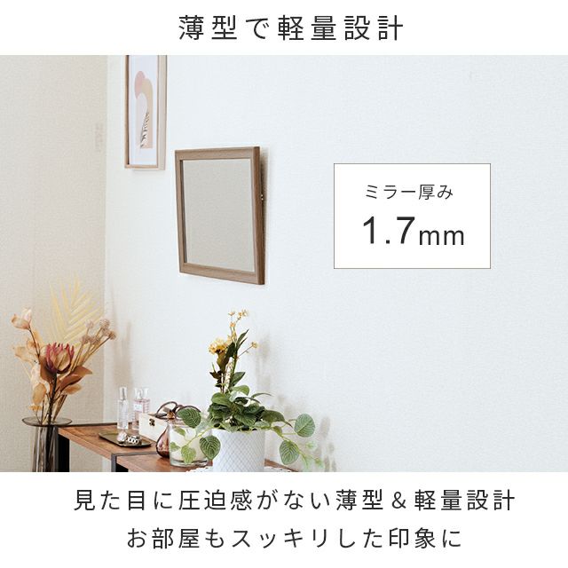木目調でインテリアにも合わせやすく優しいイメージに♪壁掛けしても、立てかけでも使える軽量でシンプルなミラーです。飛散防止加工がされた安全安心設計。 |