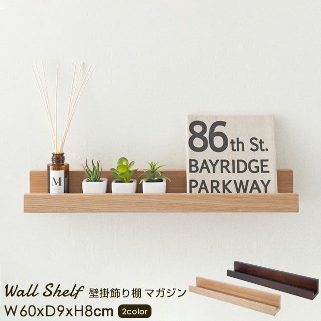 壁面収納棚 マガジンラック 幅60×奥行9×高さ8cm ウォールラック ウォールシェルフ NKB-M60