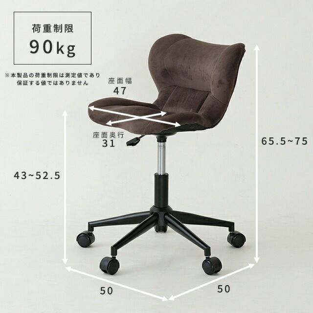 (約)W50×D50×H65.5~75cm 座面サイズ:幅47×奥行き31cm 座面高さ:約43~52.5cm |