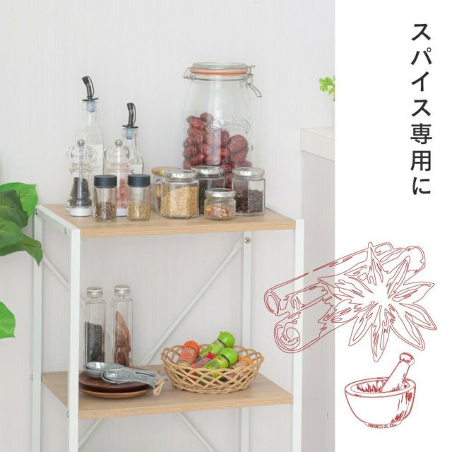 全体耐荷重60kg・棚板1枚あたり15kg ※耐荷重は、均等荷重をかけた場合の測定値であり、保証する値ではありません。 |