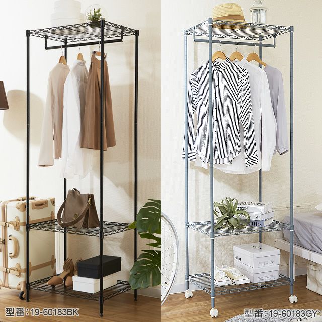 スチールシェルフ(棚板)×3枚 スリーブ(棚取付用部品)×12組(+予備1組) ポール×各4本 ストッパー付きキャスター×2、ストッパー無しキャスター×2 ハンガーポールセット×1セット(ネジ・ワッシャー×各2個、ハンガーポール×1、ハンガーポール用フック×2個で1セットになります) スパナ×1個 |