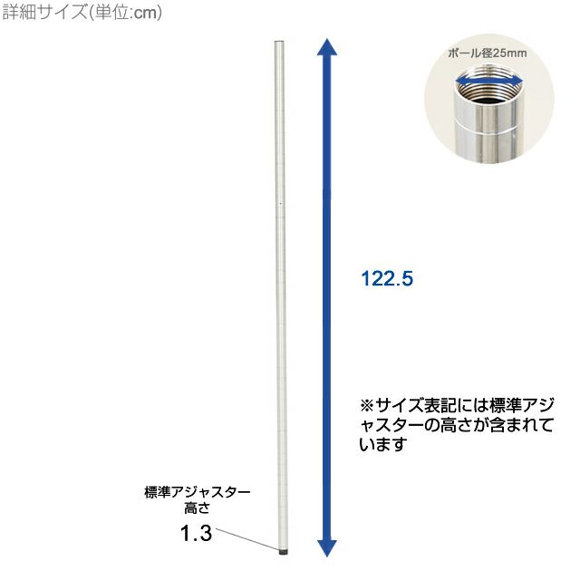 基本ポール 長さ122.5cm ルミナスプレミアム ポール径25mm スチールラック パーツ 25P120-S