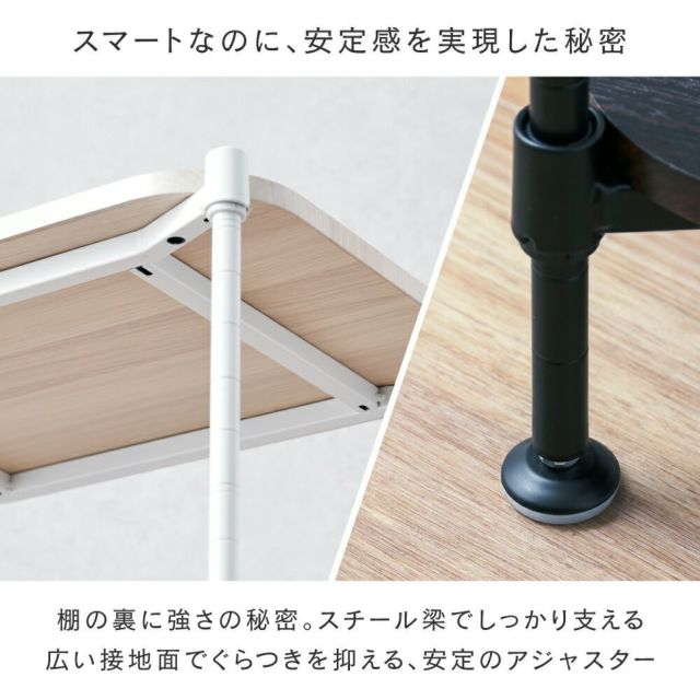 本体:スチール アジャスター:スチール+ポリプロピレン スリーブ:ABS樹脂 木板:MDF + PVC(繊維化粧板+塩化ビニール) |