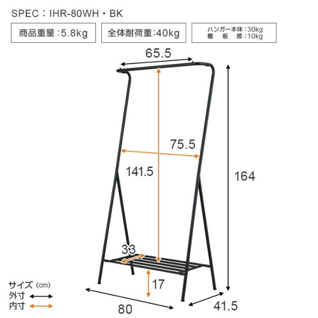 耐荷重 ハンガー本体30kg ・棚部10kg・全体40kg
