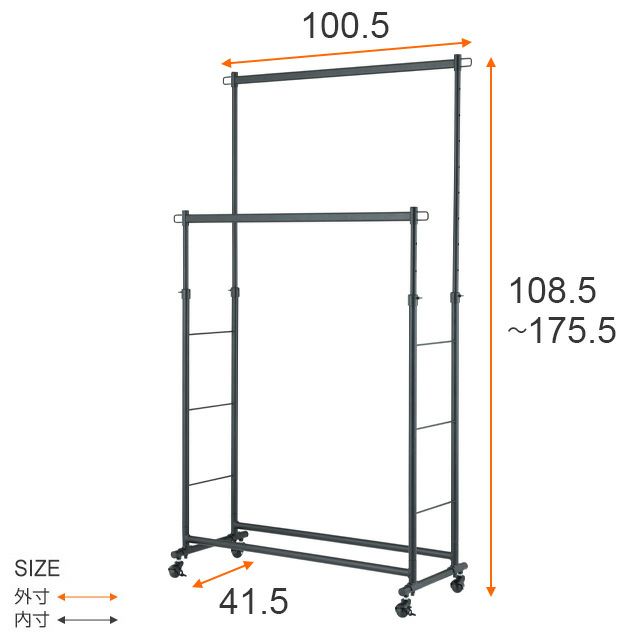 外形寸法 | (約)幅100.5cm(回転フック含まず) 奥行42×高さ108.5?175.5cm |
