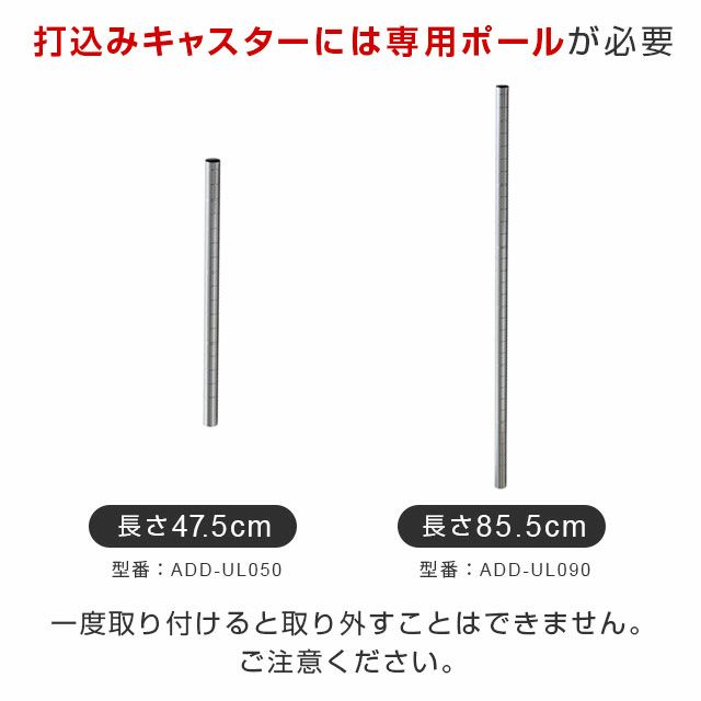 ・組み立てのシェルフ最下段は、ポールから3ピッチ目よりも下の位置に取り付けてください。