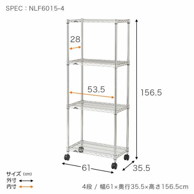 キャスター使用時:幅61×奥行35.5×高156.5cm