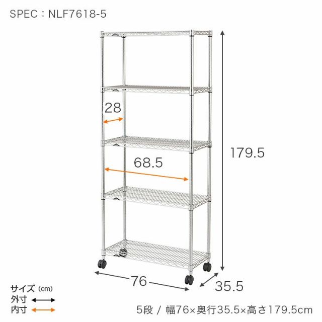 キャスター使用時:幅76×奥行35.5×高179.5cm