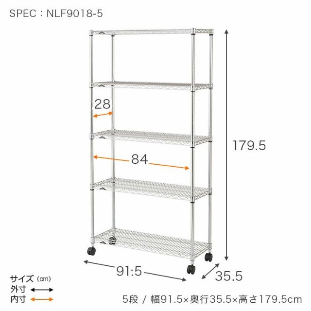 キャスター使用時:幅91.5×奥行35.5×高179.5cm