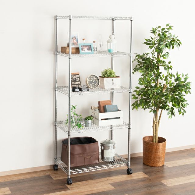 | 材質 | スチールシェルフ(棚板)・ポール:スチール(クロームメッキ) ナイロンキャスター:ナイロン樹脂 スリーブ:ABS樹脂 |