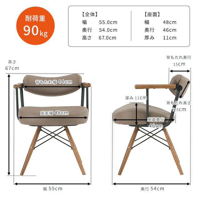 座椅子 脚付き ダイニングチェア 幅55×奥行54×高さ67cm×座面高43c Re:ノセルチェア RE-PC