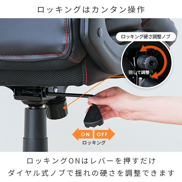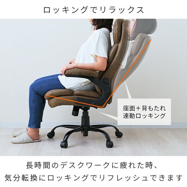 ■ロッキング機能付きで在宅ワークの際のリフレッシュに。