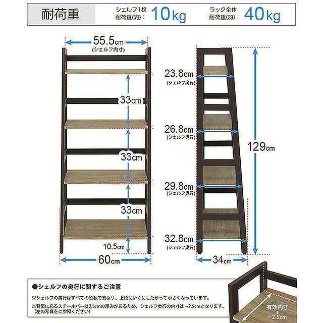 耐荷重(約) 全体:40kg/棚板一枚あたり:10kg