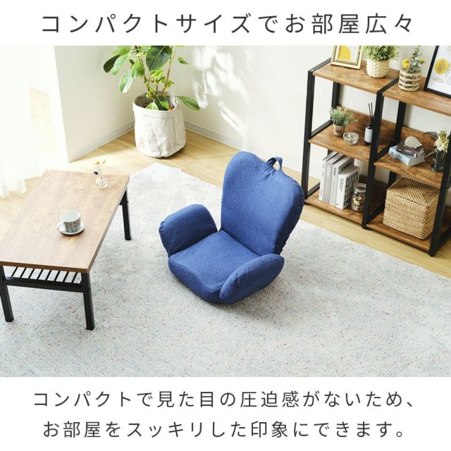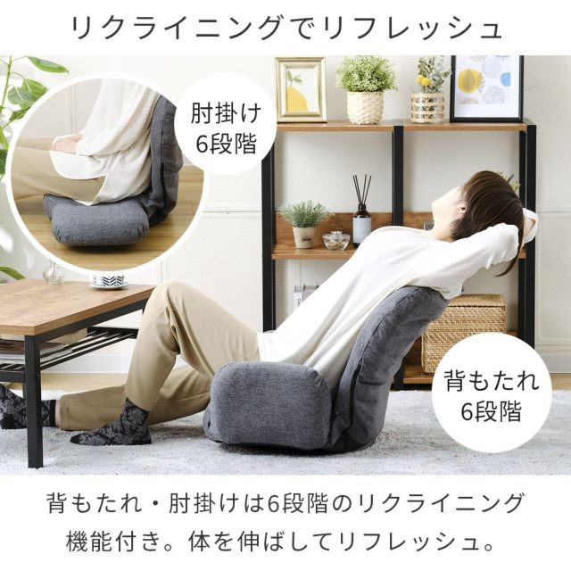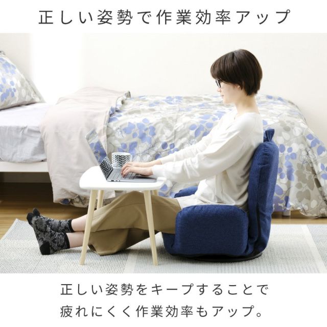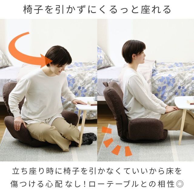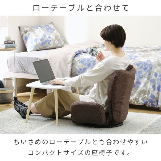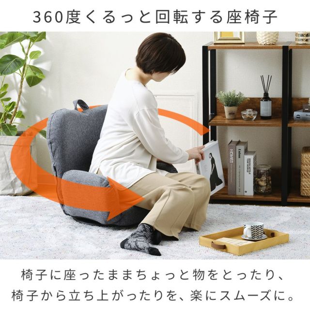 座椅子 回転式 コンパクト 6段階ギア フロアチェア 幅59-87x奥行51-60x高さ52-54cm EKZSR