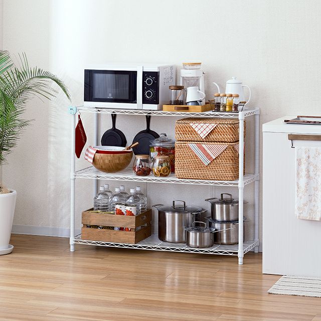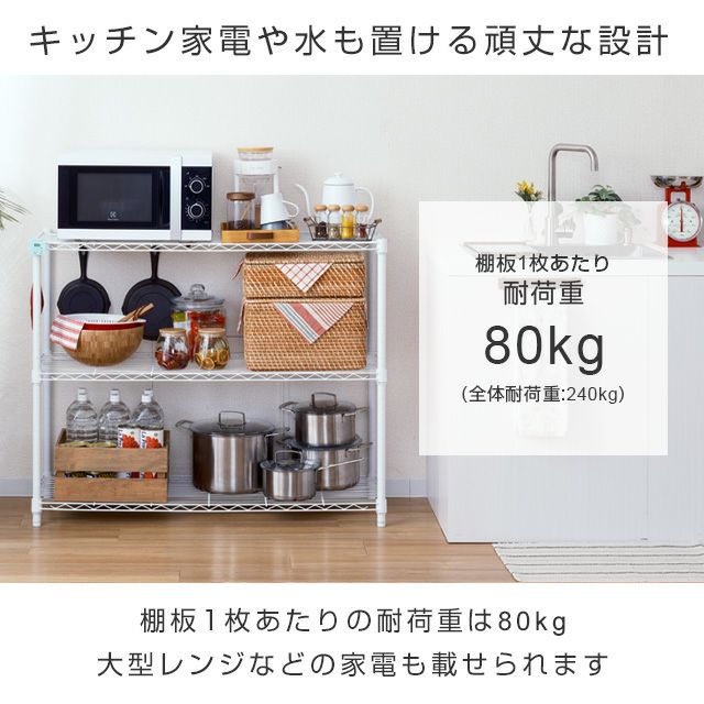 キッチンラック 幅110cm 3段 ルミナスラテ スチールラック ホワイト 幅111×奥行41×高さ90cm EHE1190-3WH