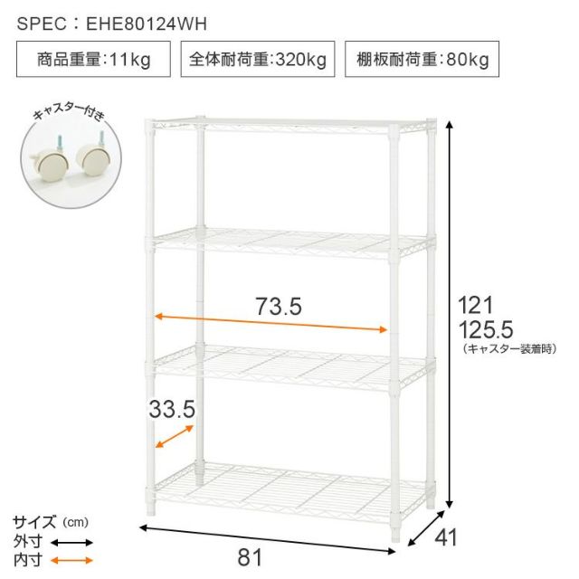 | 幅81×奥行41×高さ121cm キャスター装着時の高さ:125.5cm |