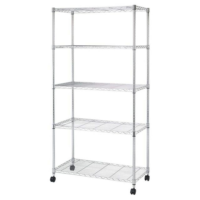 セット内容 | スチールシェルフ(棚板)×5枚 スリーブ(棚板取付用部品)×20組(+予備1組) ポール×4本 ナイロンキャスター(ストッパー付)×2個 ナイロンキャスター(ストッパーなし)×2個 標準アジャスター×4個 スパナ×1個(キャスター取付用) |