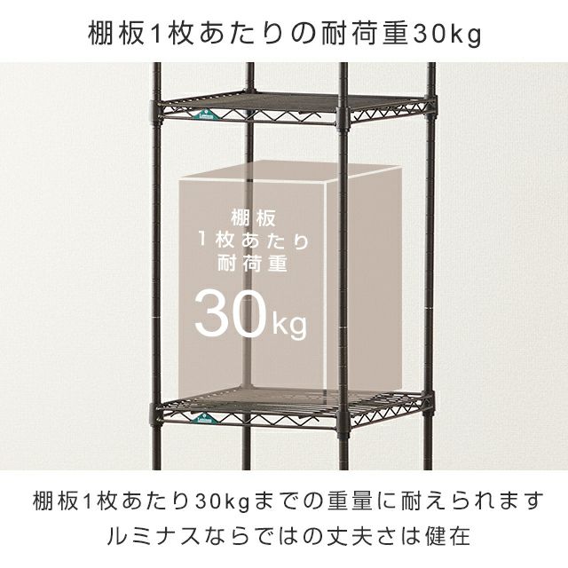 ※耐荷重の値は、スチールシェルフ(棚)全面に、均等に荷重をかけた場合の値になります。