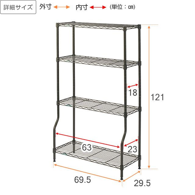 外形寸法 (約)幅69.5×奥行29.5×高さ121cm