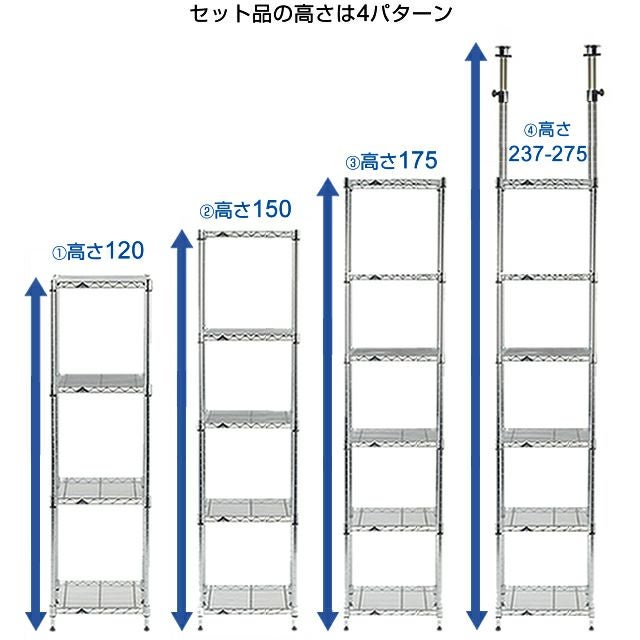 スチールシェルフ(棚板)・ポール:スチール(クロームメッキ) スリーブ:ABS樹脂 |