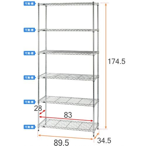 スチールラック 幅90cm 6段 ルミナスライト スチールラック 幅89.5×奥行34.5×高さ174.5cm IHT9018-6