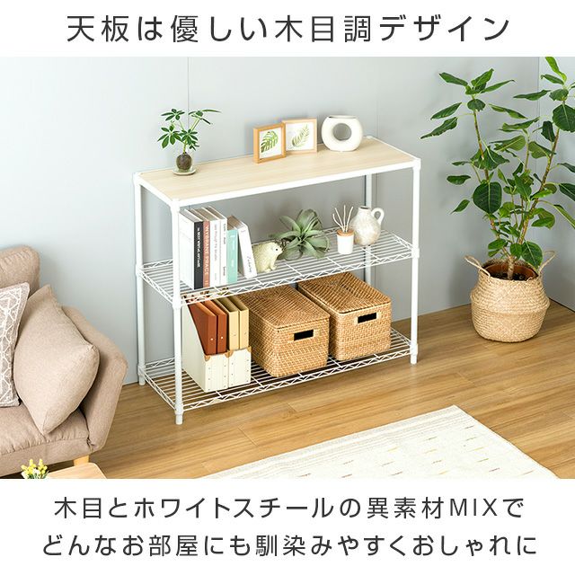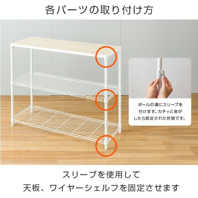 スチールシェルフ・ポール/スチール(粉体塗装) スリーブ・アジャスタ/ABS樹脂 木棚/MDF(PVCシート貼り) |