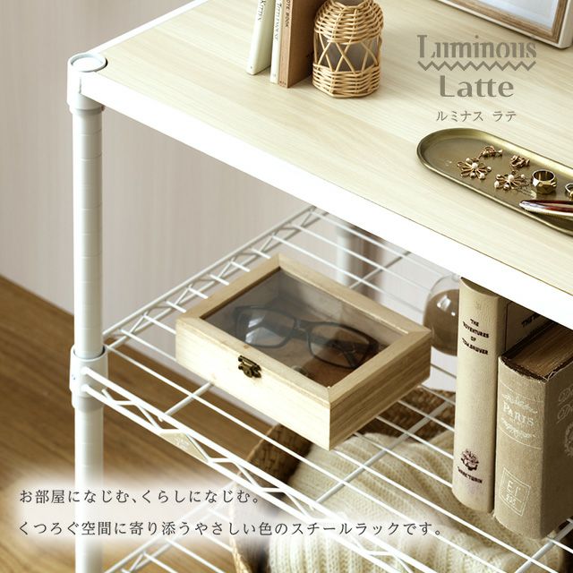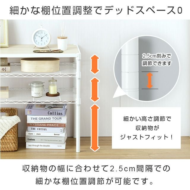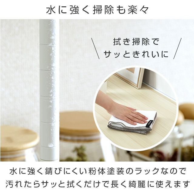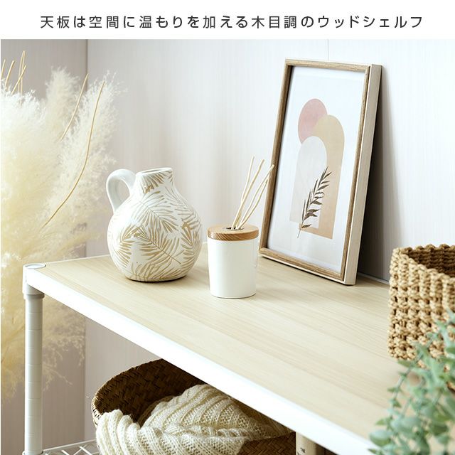 | スチールシェルフ・ポール/スチール(粉体塗装) スリーブ・アジャスタ/ABS樹脂 木棚:MDF(PVCシート貼り) |