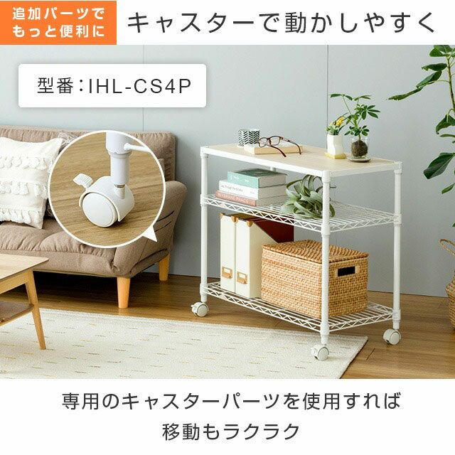 | スチールシェルフ・ポール/スチール(粉体塗装) スリーブ・アジャスタ/ABS樹脂 木棚:MDF(PVCシート貼り) |