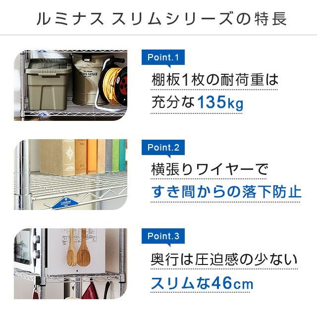 スチールシェルフ 幅152×奥行46cm ルミナススリム スチールラック パーツ ポール径25mm用 棚 幅150cm SM1545N