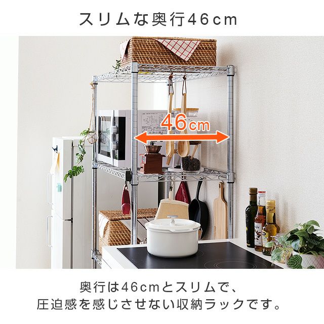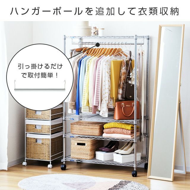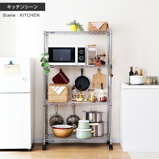 | 材質 | スチールシェルフ(棚板)・ポール:スチール(クロームメッキ) スリーブ:ABS樹脂 |