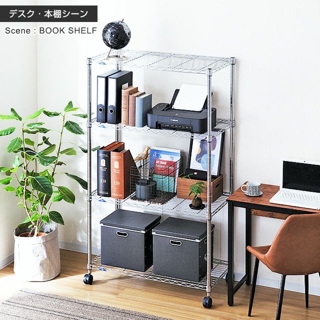 | セット内容 | スチールシェルフ(棚板)×4枚 スリーブ(棚板取付用部品)×17組 ポール×4本 ナイロンキャスター(ストッパー付)×2個 ナイロンキャスター(ストッパーなし)×2個 標準アジャスター×4個 スパナ×1個(キャスター取付用) |