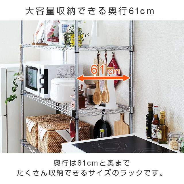 | 材質 | スチールシェルフ(棚板)・ポール:スチール(クロームメッキ) スリーブ:ABS樹脂 |