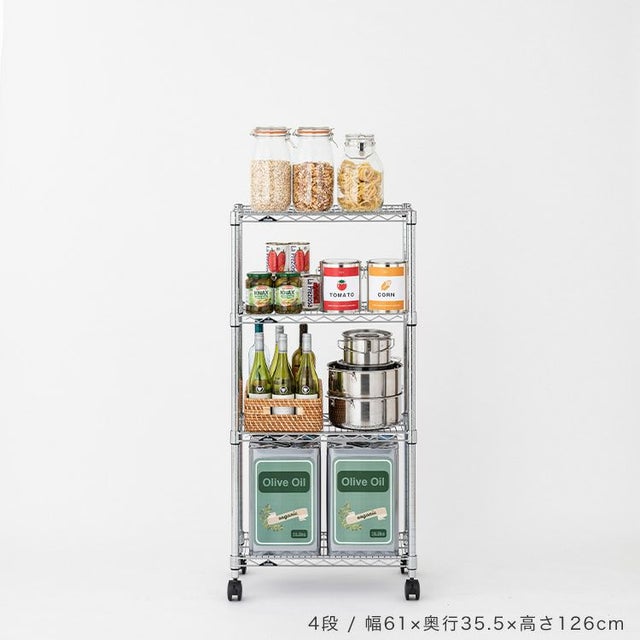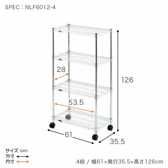 スチールシェルフ(棚板)・ポール:スチール(クロームメッキ) ナイロンキャスター:ナイロン樹脂 スリーブ:ABS樹脂 |