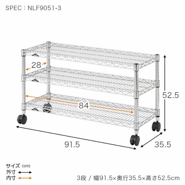 キャスター使用時:幅91.5×奥行35.5×高52.5cm
