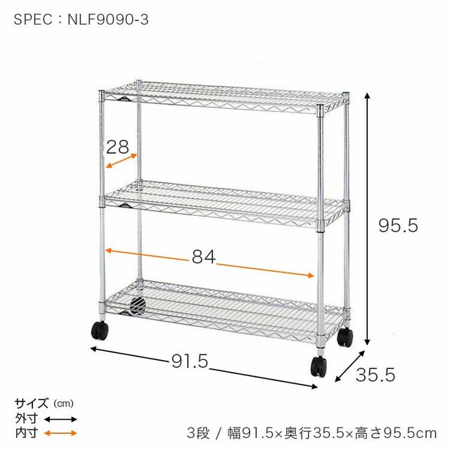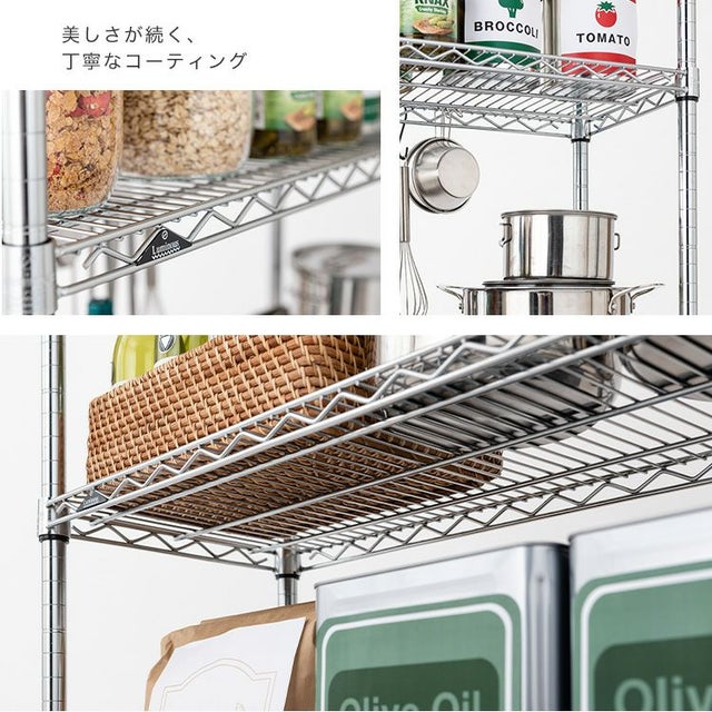 スチールシェルフ(棚板)・ポール:スチール(クロームメッキ) ナイロンキャスター:ナイロン樹脂 スリーブ:ABS樹脂 |