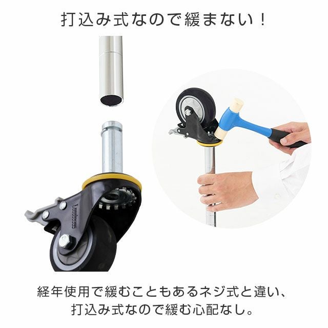 ・キャスターは、一度ポールに取り付けると外せません。ご注意ください。