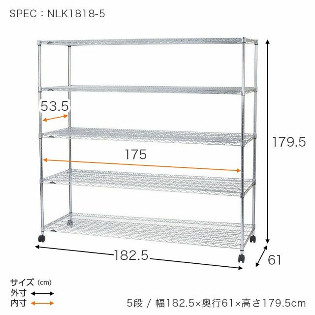 | 外形寸法 | アジャスタ装着時:幅182.5×奥行61×高さ174cm キャスター装着時:幅182.5×奥行61×高さ179.5cm |