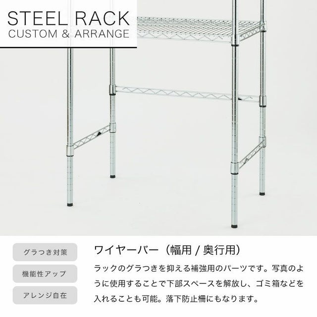 | 材質 | スチールシェルフ(棚板)・ポール:スチール(クロームメッキ) ナイロンキャスター:ナイロン樹脂 スリーブ:ABS樹脂 |