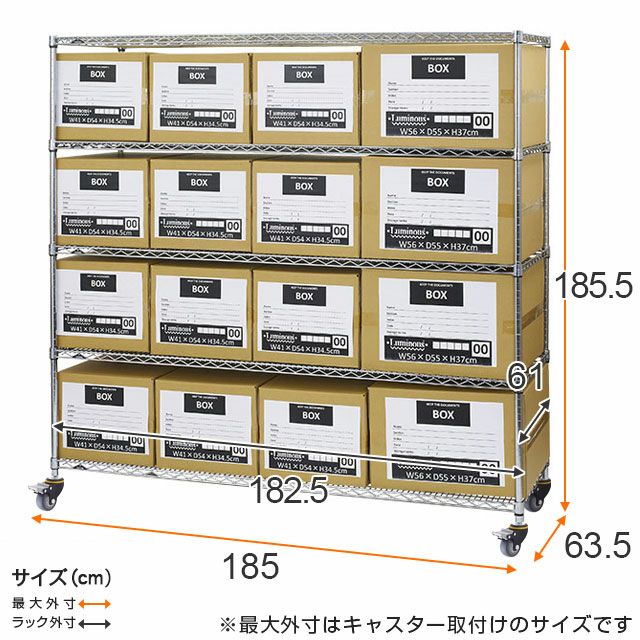 ラック外寸:幅182.5×奥行61×高さ185.5cm |