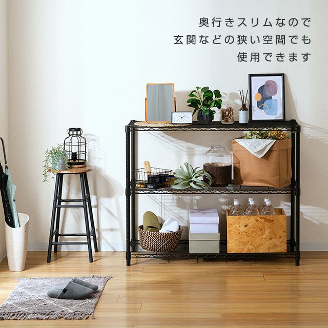 スチールラック 幅110cm 3段 ルミナスノワール 幅111×奥行41×高さ94.5cm NO1190