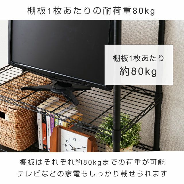 | 耐荷重(約) | 棚板1枚あたり | 80kg ※シェルフ全面に均等に荷重をかけた場合の値になります。 |