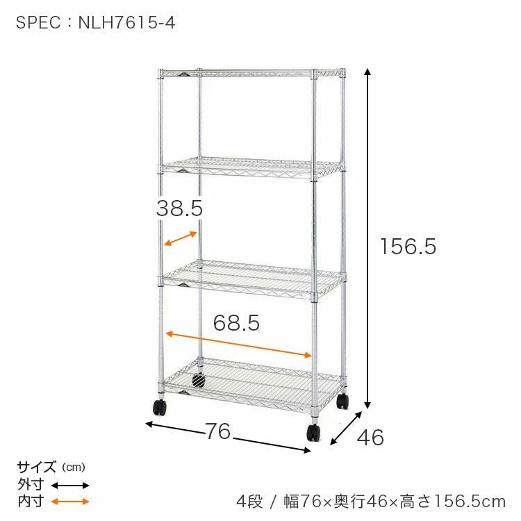 他の画像を見る 交換保証対象品 送料無料 ルミナスレギュラー 幅76cm 奥行46cm 高さ156.5cm NLH7615-4 スチールラック 幅75cm 4段 ルミナスレギュラー 幅76×奥行46×高さ156.5cm NLH7615-4 ¥ 13,800 税込