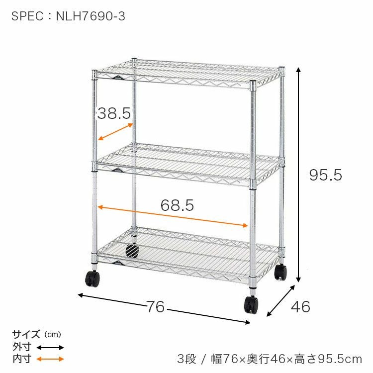 他の画像を見る 交換保証対象品 ルミナスレギュラー 幅76cm 奥行46cm 高さ95.5cm NLH7690-3 スチールラック 幅75cm 3段 ルミナスレギュラー 幅76×奥行46×高さ95.5cm NLH7690-3 ¥ 11,800 税込