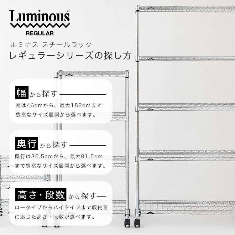 他の画像を見る 交換保証対象品 送料無料 ルミナスレギュラー 幅91.5cm 奥行46cm 高さ156.5cm NLH9015-4 スチールラック 幅90cm 4段 ルミナスレギュラー 幅91.5×奥行46×高さ156.5cm NLH9015-4 ¥ 14,800 税込
